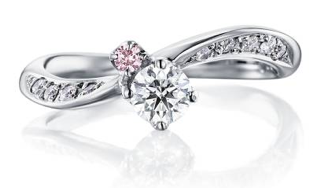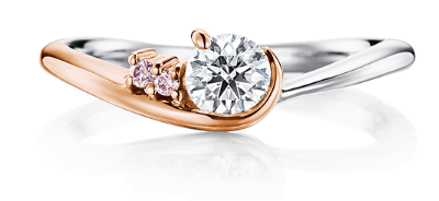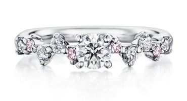 白钻和粉红钻的双色配钻仿若星星呢喃眨眼般小巧可爱。左右配钻使用粉红钻与白钻,两色的交替闪烁就如天上繁星的闪耀。除了更加呈现出女性可爱的一面,同时也可感受到典雅的气质。若将这款「Twinkle」递到天秤新娘面前,她们的选择困难症也许会被彻底治愈~