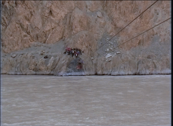 ⬆【动图】2011年新闻纪实片《皮里村(皮勒村)孩子的上学路》留下了孩子们使用皮勒村铁索摆渡的惊险一幕
