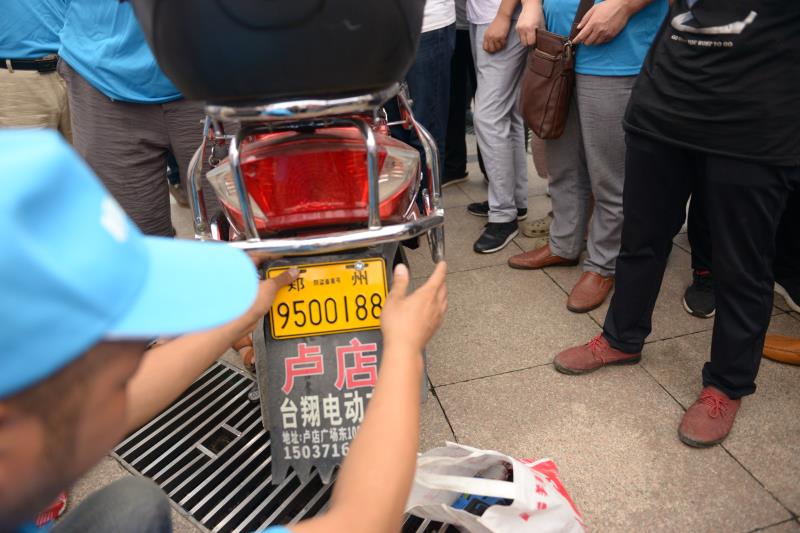 在登封市少林路联通营业厅门前广场,记者看到,一些市民正在办理上牌手续,电动自行车尾部挂有“郑州防盗备案号”字样车牌,车牌号以“9”开头,共7个数字。“有了车牌,车辆有了安全保障,今后骑车也会更加遵守交通法规。”市民贾先生说。