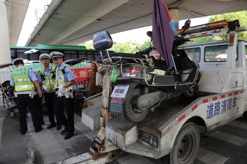 当天下午一个小时的时间,交警共查处电动车交通违法行为49起,拆卸遮阳棚9辆,暂扣电动三轮车3辆,暂扣电动四轮车2辆,查处机动车行驶在非机动车道、电动车逆行、违法载人、行驶机动车道等其他交通违法行为22起,都当场进行了批评教育查处。