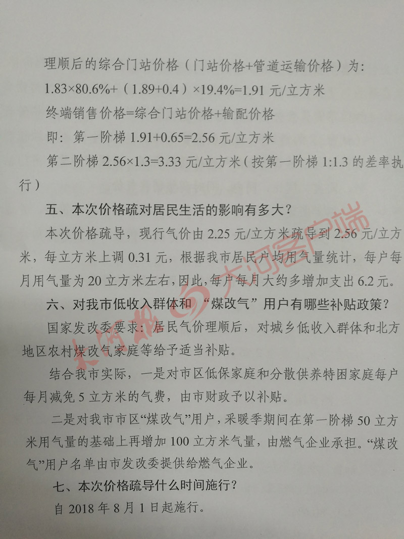 三是居民管道天然气销售价格由市县疏导,今年的疏导工作应在8月底前完成。