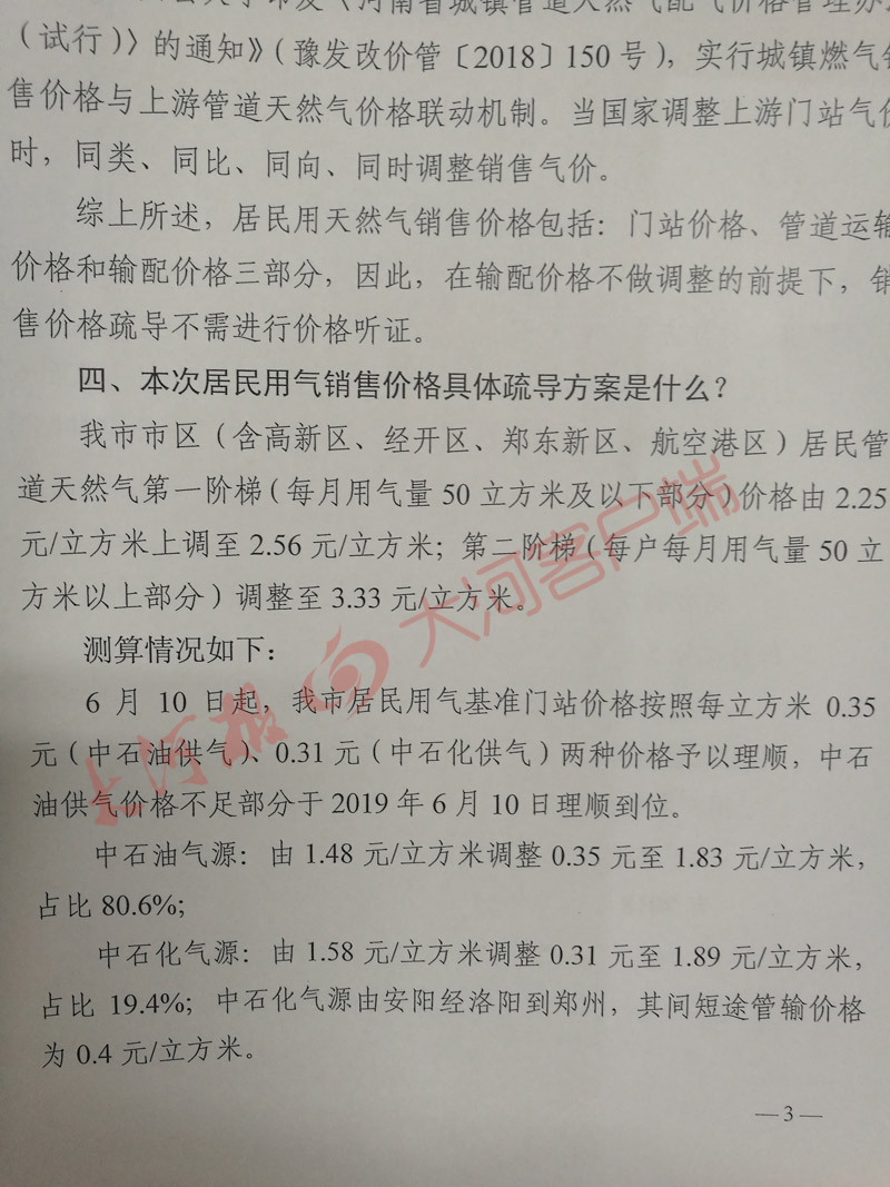重磅!郑州居民用气价格要调整,每方涨0.31元!