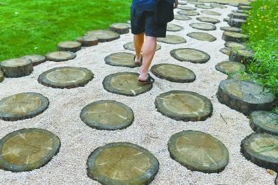 公园林下广场采用园林废弃物新型环保铺装,脚感更加舒适,体现节约型园林、海绵城市理念。