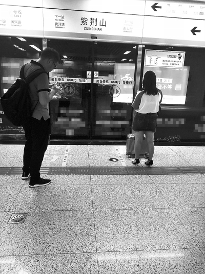 同样作为城市公共交通的郑州地铁,8月9日,大河报·大河客户端记者观察发现,地铁站内,有的站台设有排队小脚丫,倡导引领乘客乘地铁时先下后上,依次排队上车。但即便有这些黄色的明显标识,在上下车当中,仍有一些乘客不排队、挤着上车的不文明现象。