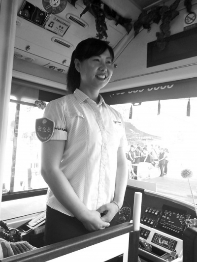 郑州公交是城市文明建设的窗口行业。图为车长微笑迎宾。
