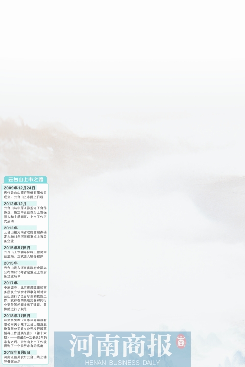 回顾云台山的上市路程,2012年,云台山景区管理层公开表示,2013年有望上市,“最迟2014年肯定会上市”。