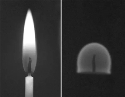 微重力能够产生更圆的温度更低的火焰。对照图中,正常重力条件下产生的火焰(左图)和微重力环境下的火焰(右图)之间的区别可谓一目了然。
