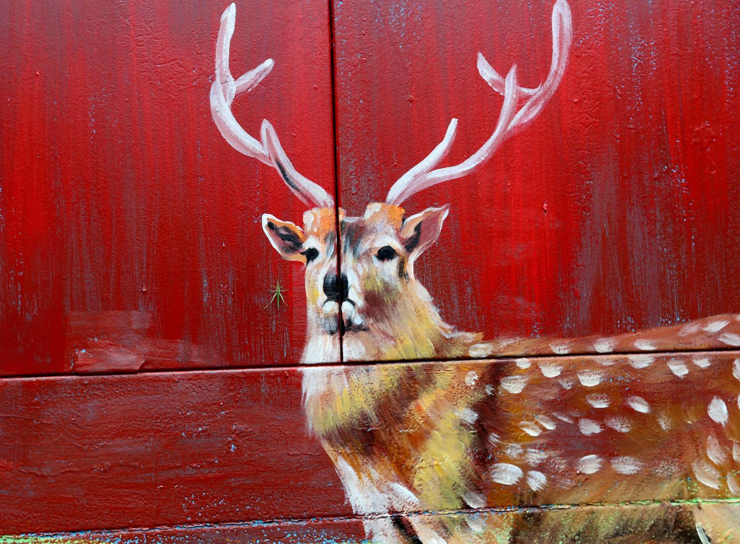 每一个配电箱的主题,都不一样,色彩也不尽相同。负责画面绘制的是一个彩绘公司,现场的工作人员告诉大河报记者说,这是由丰产路街道办事处统一安排的,他们将路口、绿化带内的配电箱进行美化。而一位参与绘制工作的大学生说,配电箱上的都是创意画,有风光,有动物,有花鸟,有房屋,但很多画面都很逼真,比如梅花鹿、奶牛、花鸟等,都能达到乱真的程度。