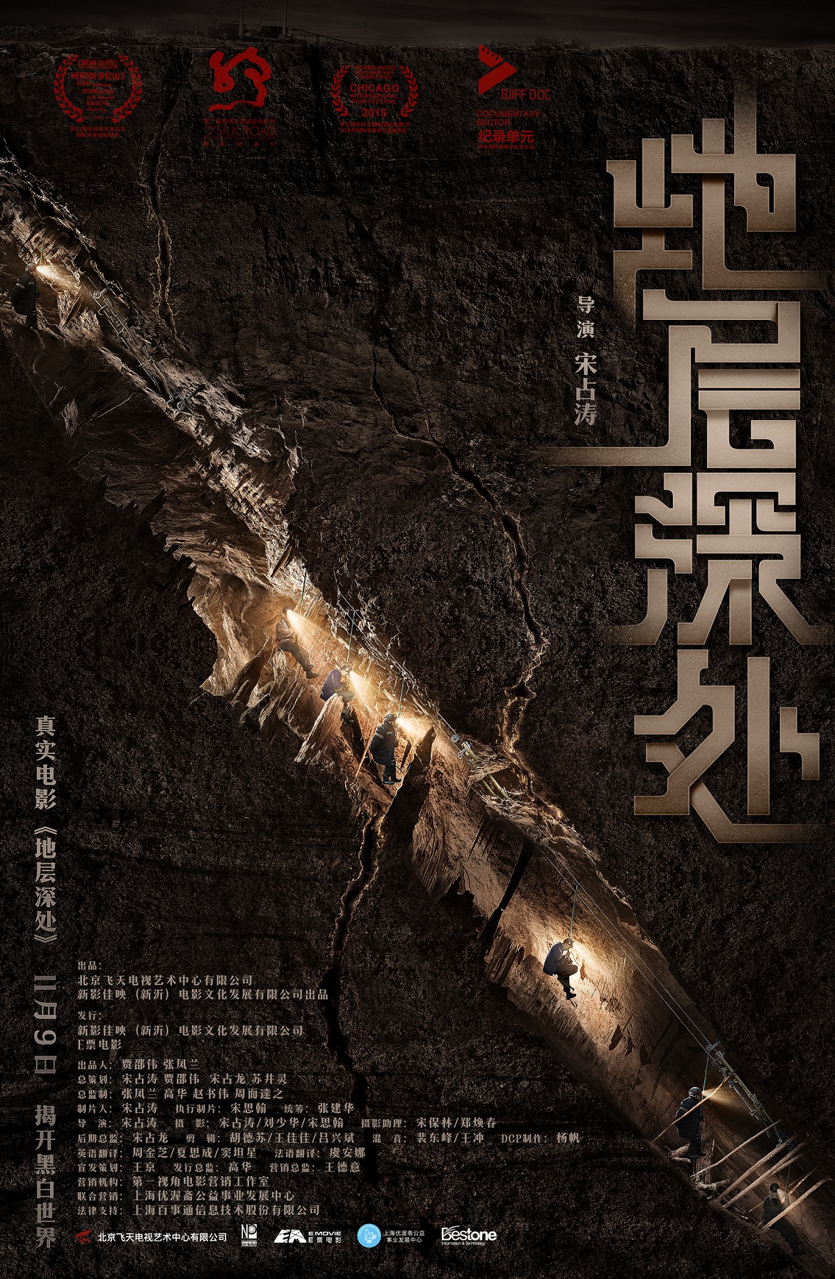 由北京飞天电视艺术中心有限公司、新影佳映(新沂)电影文化发展有限公司出品,新影佳映(新沂)电影文化发展有限公司与E票电影联合发行,宋占涛导演的“真实电影”《地层深处》先后获得第37届法国真实电影节国际评审团特别奖、第51届美国芝加哥国际电影节纪录片国际竞赛单元银雨果奖、第二届丝绸之路国际电影节最佳纪录片奖和第六届北京国际电影节纪录单元评审团特别推荐提名作品奖四项国际及国内电影节大奖。