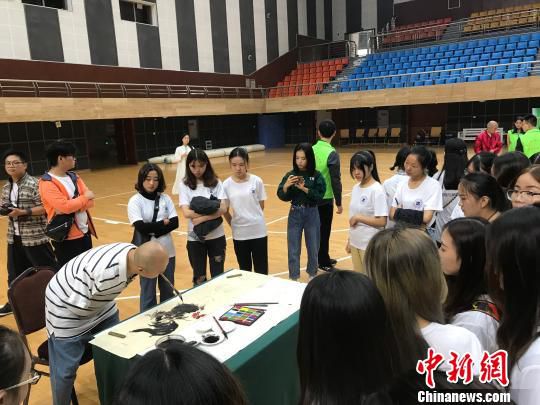 中新网重庆10月12日电 (记者 钟旖)“这是我第一次近距离接触残疾人群体。当我看到无臂的老师用嘴衔毛笔画画,我的内心很感动。”12日,19岁的重庆工业职业技术学院一年级新生于秋怡看着口足画家黄国富借用嘴和脚,在短时间内轻松自如地完成绘画,如是感慨。