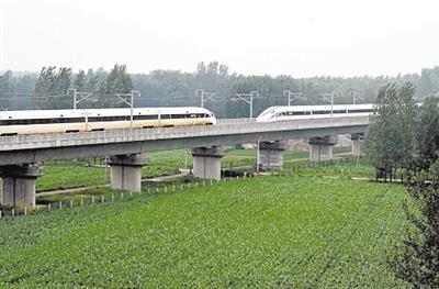 图为2016年7月15日,两辆标准动车组列车在郑徐线上交会。