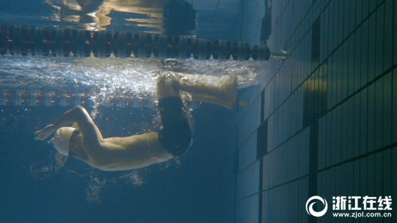 解决了天气问题后,主创团队又遭遇了另一个难题——水下拍摄。由于专业运动员们训练比较忙碌,应豪从高校中找来了杭州电子科技大学体育老师沈雷,在陈经纶体校的泳池完成了。因为要在水下拍摄,沈雷在水中泡了12个小时,期间只上了三次岸。