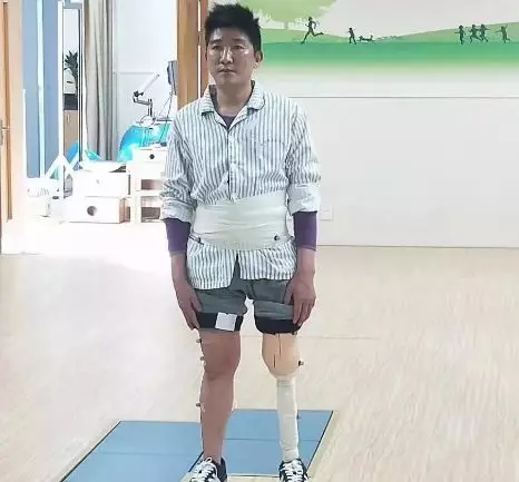 近日,在浙江康复医疗中心和假肢提供商的帮助下,历经两次手术的外卖小哥王建生为左腿上安装了假肢。