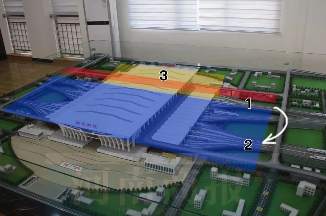 (1)将先建设 郑万场其中的4条股道 ,作为“保通路” ,待郑万、郑阜铁路通车后,高铁列车将借用这4条股道穿过郑州南站区域,去往郑州东站上下乘客;