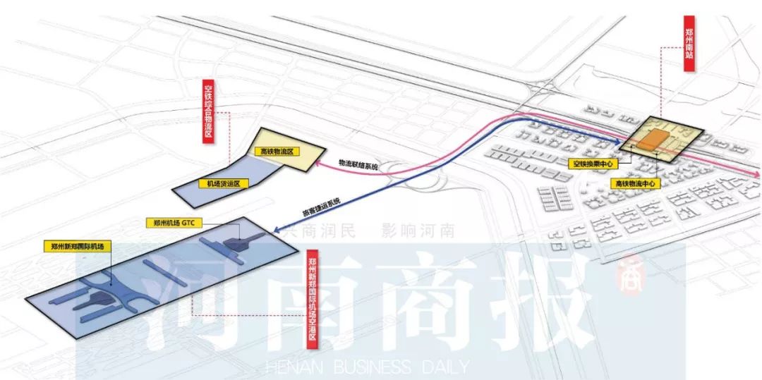 通俗的说,你从外地乘高铁到达郑州南站后,可以直接在地面一层空铁换乘中心办理值机手续,乘坐捷运系统进入机场候机;相关高铁快运的货物,可以通过连接线与机场外运货场相连,提高效率。