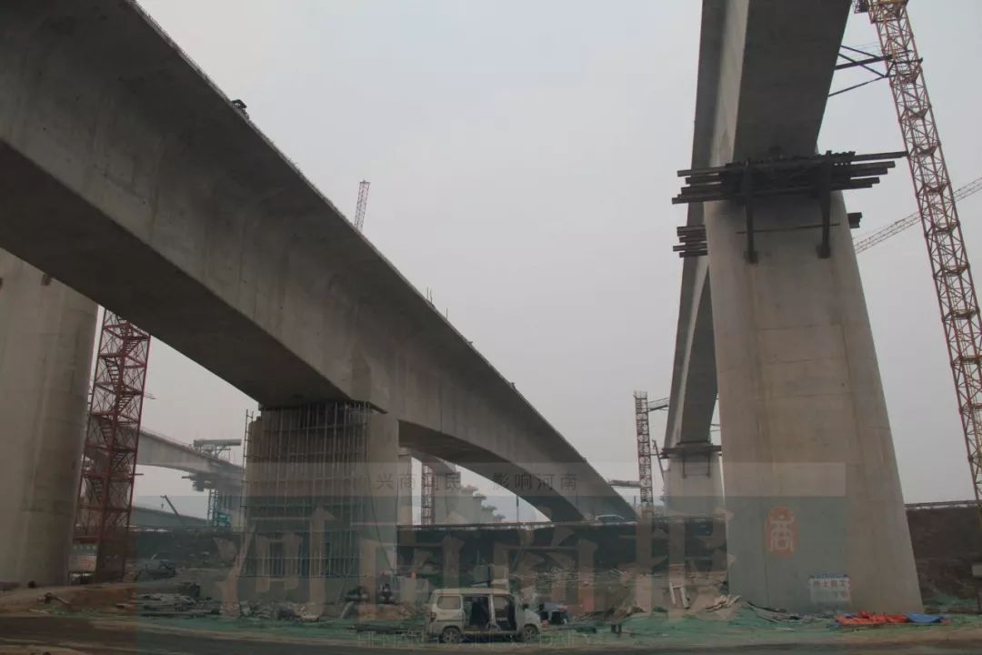 中铁四局郑州南站项目负责人张静思说,这5座长桥分别是郑万正线、郑阜上行联络线、郑阜下行联络线、郑阜左线、郑阜右线, 桥梁将跨越商登高速,是郑万铁路控制性工程 ,“目前5联连续梁已合龙4联,剩余1联将于近期合龙。” (下图)