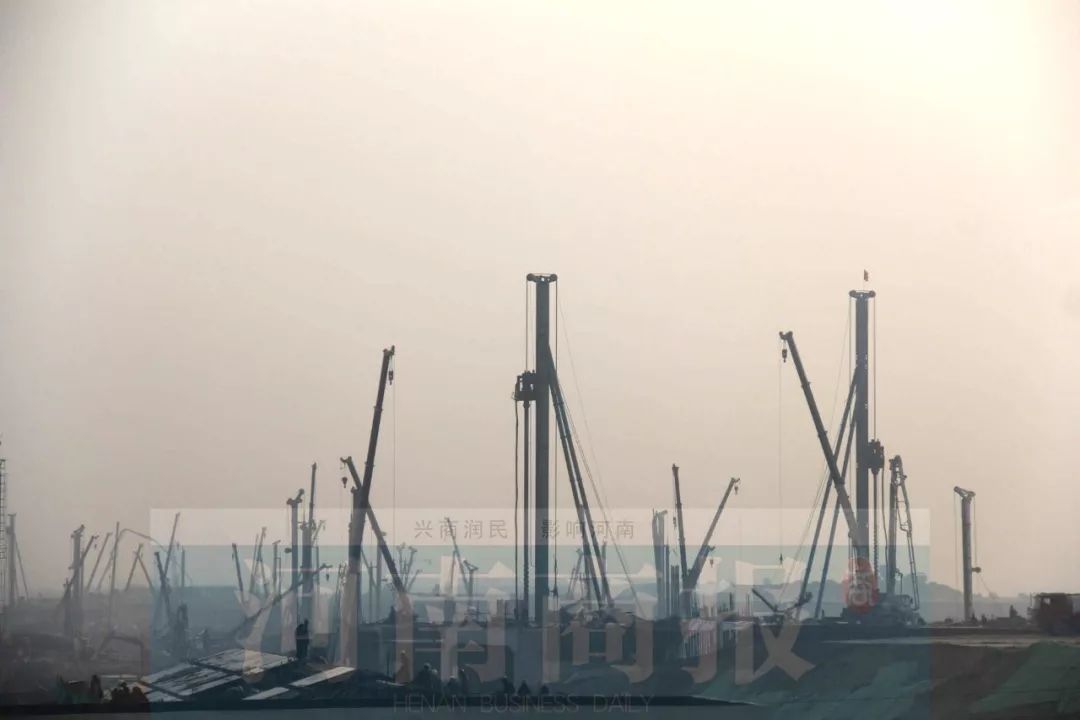 河南商报记者今年1月3日在郑州南站施工工地看到,几十台打桩机正在“疯狂”打桩。像是立了几十根会移动的电线杆。