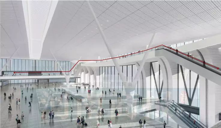 当下,大型车站的常见设计为地上三层加地铁:三层为候车厅,二层为高铁站台,一层为出站疏散区域,负一层会接驳地铁车站。