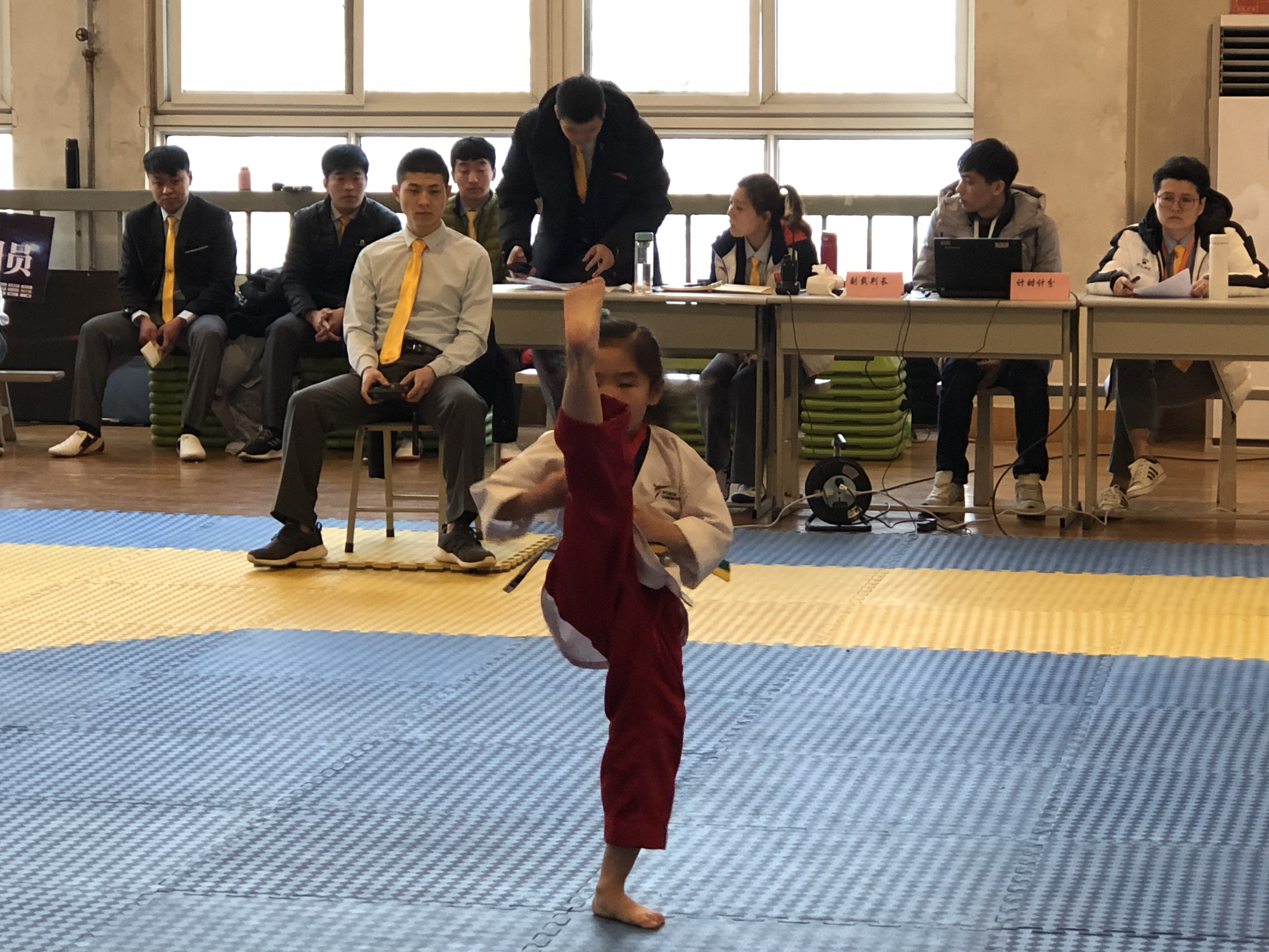 蔺轩印从5岁开始学跆拳道,据蔺轩印的妈妈介绍,他们的初衷是想让孩子强身健体,增强动作协调性和灵活性,更深刻地了解体育竞技精神。"能够参加今天这样大型的专业性质的比赛我们都很开心,对于孩子今天的表现我非常满意。比赛的选手里有全国冠军、世界冠军,而且都有自己的道馆,看表演赛时我心潮澎湃。"