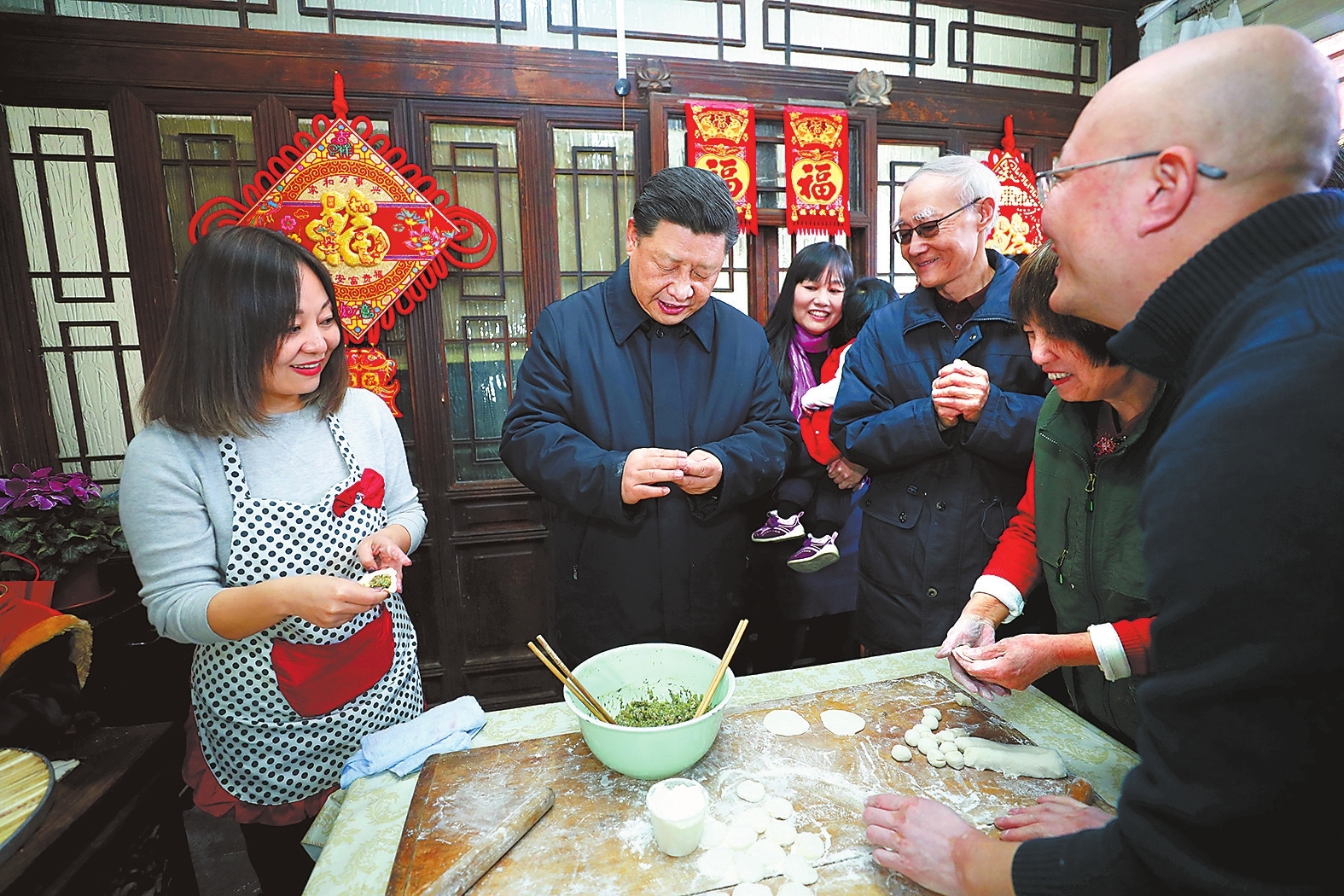 习近平和市民一起包饺子、炸饹馇、聊家常