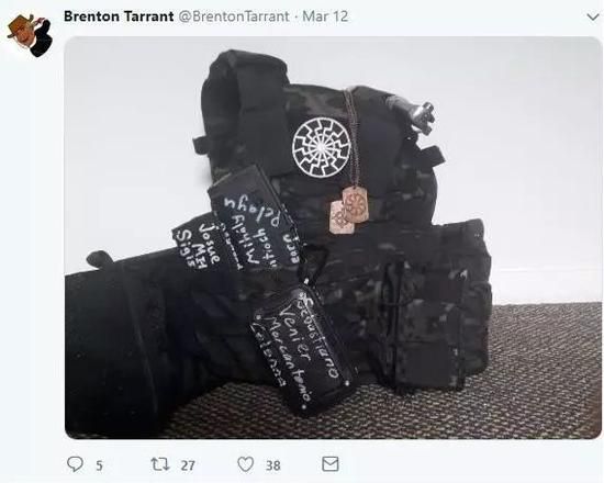 有网民发现塔兰特曾于3月12日在推特上传了大量武器照片,包括很多弹夹。
