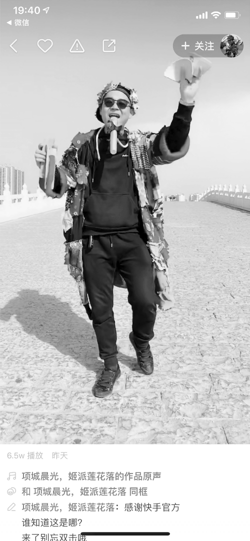 刚开始他在项城的公园、街头唱,后来看身边人都在玩短视频,聂晨光尝试在快手上发布作品。
