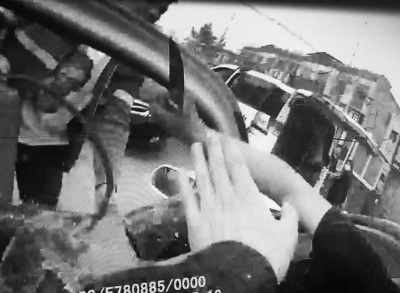 执法记录仪截取犯罪嫌疑人崔某突然掏出随身携带的匕首刺向民警朱喆瞬间