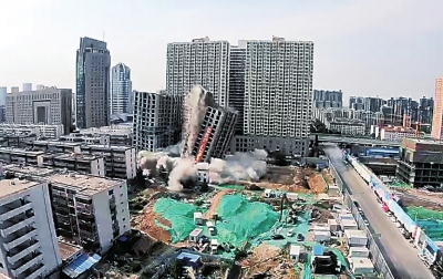 原常砦地块上的两栋烂尾楼被爆破拆除