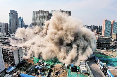全部爆破4.5秒 郑州两栋烂尾楼爆破拆除 离最近的住宅楼只有13米