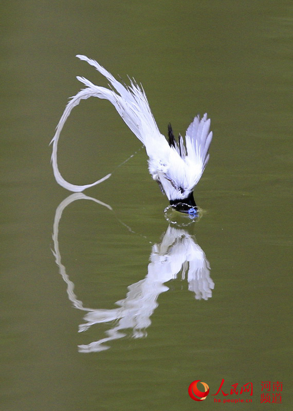 人民网郑州6月24日电(记者王玉兴)近日,在三门峡黄河湿地公园,全国各地的野生动物摄影师蜂拥而至,他们的到来主要是为了拍摄一种美丽的鸟——寿带鸟。寿带鸟,有两根灵动飘逸的长尾巴,形似绶带而得名,大家都把它叫林中仙子,但人们更喜欢称其为寿带鸟,寓为长寿之意。