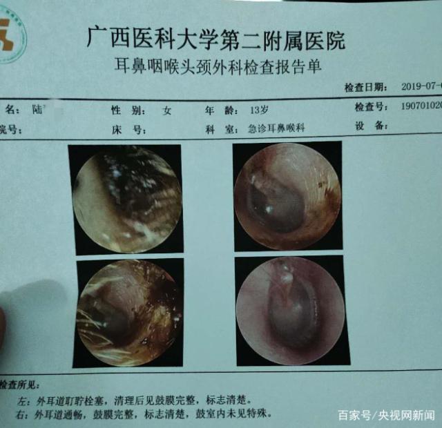 广西医科大附属医院对小陆身体的检查报告单显示,对小陆的耳鼻、咽喉、头颈等外科检查结果显示,其身体未现异常。