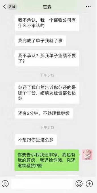 小谭:" 我有问过他为什么要把我的照片 P 进去。他们还问我为什么会有我的照片,关键我是我这张不在我朋友圈,就只存在我的手机上的,我不知道他们怎么得到的。我也没有在任何平台上贷过网贷。