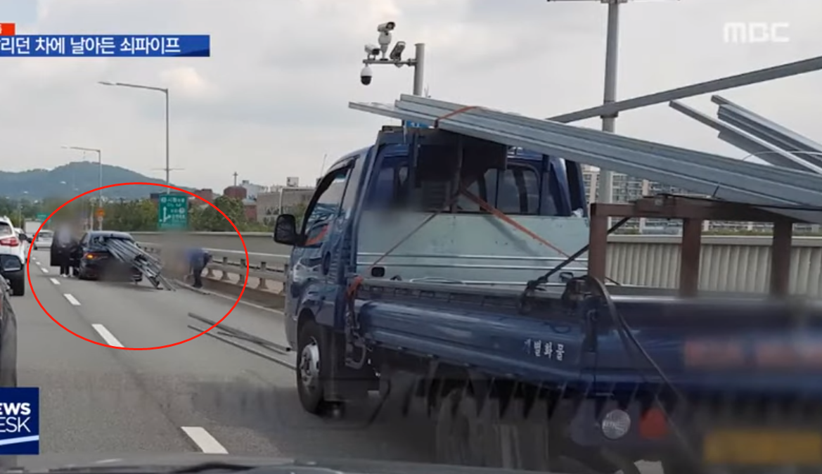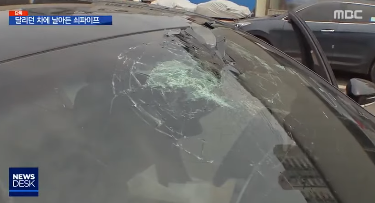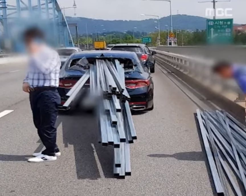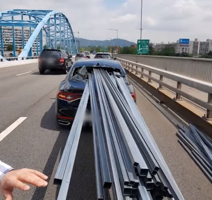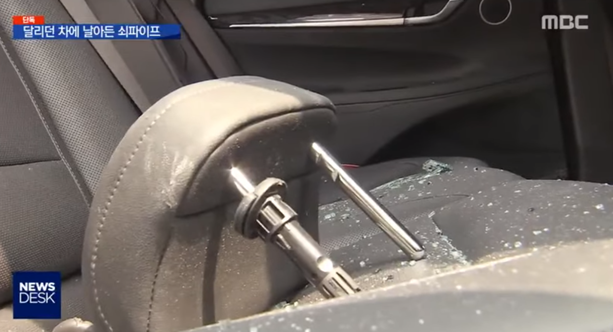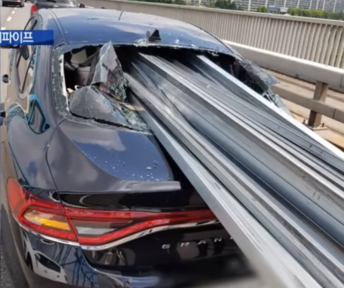 韩国男子开车时听见巨响 一看30根铁管插向副驾驶
