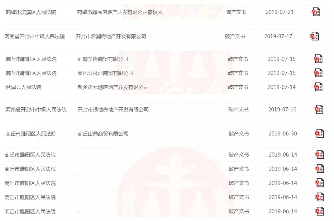 大河报·大河财立方记者查询得知,截至7月26日,商丘市有8家房地产企业被宣告破产清算,开封市则有4家房地产企业被宣告破产清算。