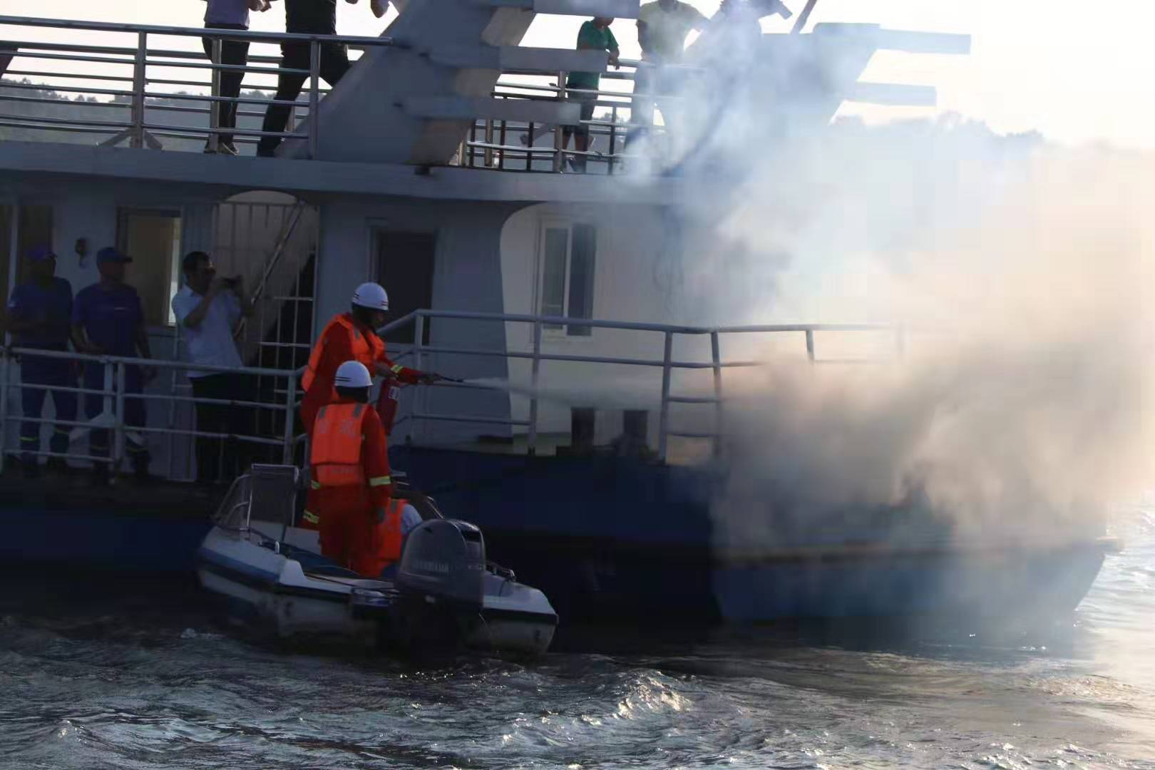 参加演习的人员有80余人,动用游船10艘、快艇4艘,演练内容包括着装泅渡、翻船训练、营救落水者、打捞溺水者和游船起火扑灭共五个课目。