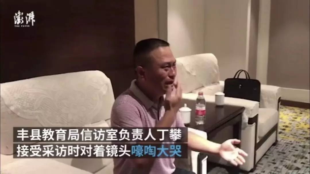 8月5日,丰县教育局信访室负责人丁攀接受采访时对着镜头大哭:“她(李秀娟)来维权,我的名声谁来维护?”
