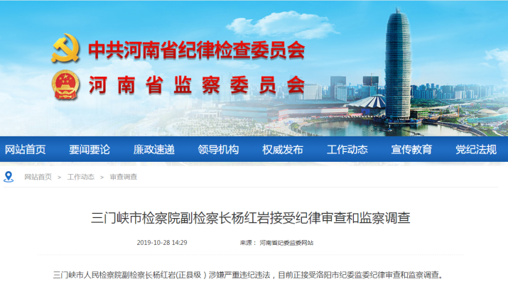 三门峡市检察院副检察长杨红岩接受纪律审查和监察调查
