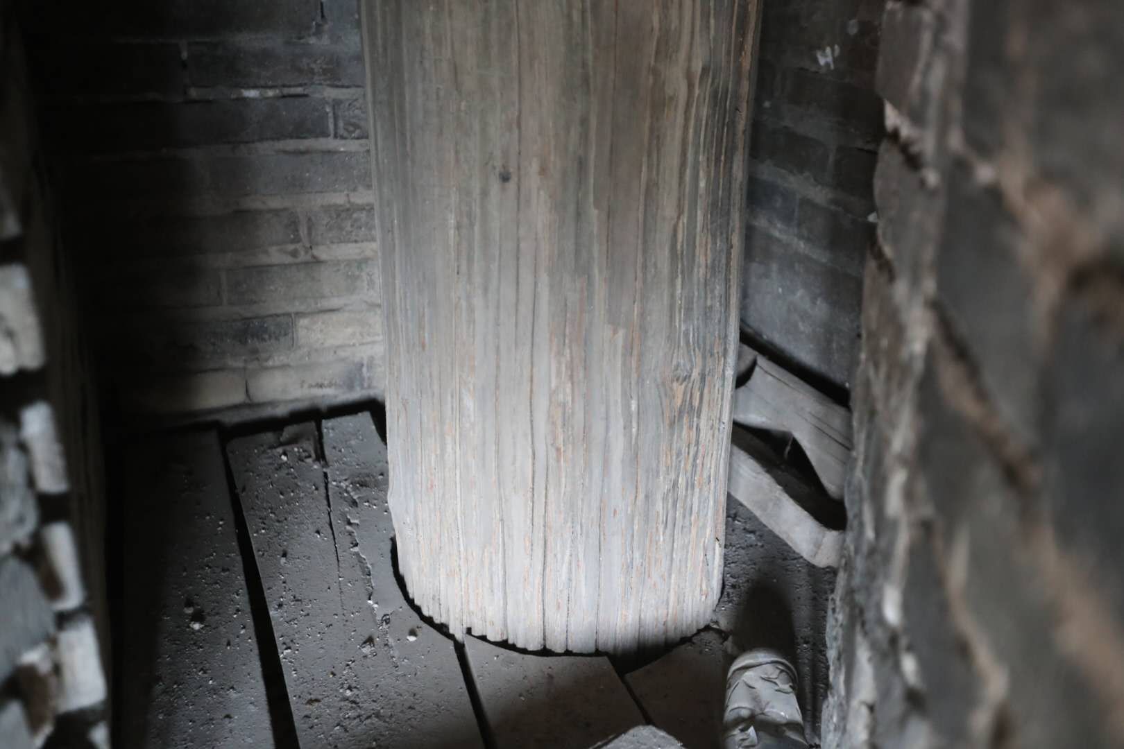 铸铁塔刹内的木刹柱,历经数百年风雨飘摇和雷劈,只剩下碗口粗。修复时,文物工作者为确保安全进行了墩接更换。大家还给这块朽黑木刹柱,起了个生动的名字“千年雷劈塔心木”。