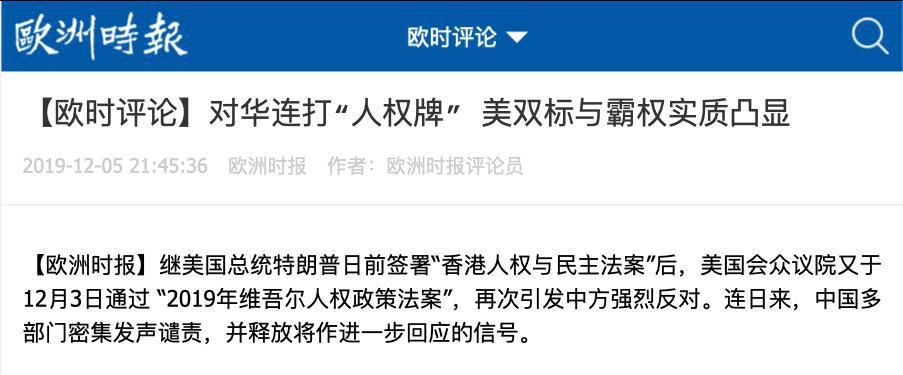 《欧洲时报》:对华连打“人权牌”美双标与霸权实质凸显