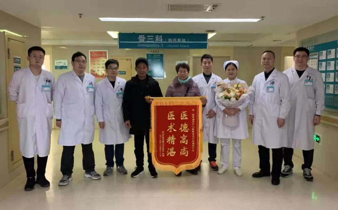 1月14日上午,驻马店市中心医院骨三科迎来了一位大约50多岁满脸笑容的大妈和欢喜的家属,大妈来到办公室说,“我是来向周志成医生表示感谢的,今天亲自来送上锦旗,以表达我对咱们创伤救治中心的感激之情。”说着,她展开锦旗,红色的背景下映着“医德高尚 医术精湛”八个亮闪闪的大字。几句简洁的话语,满溢着对医务人员高尚医德、高超医术、贴心服务的高度肯定和赞扬。