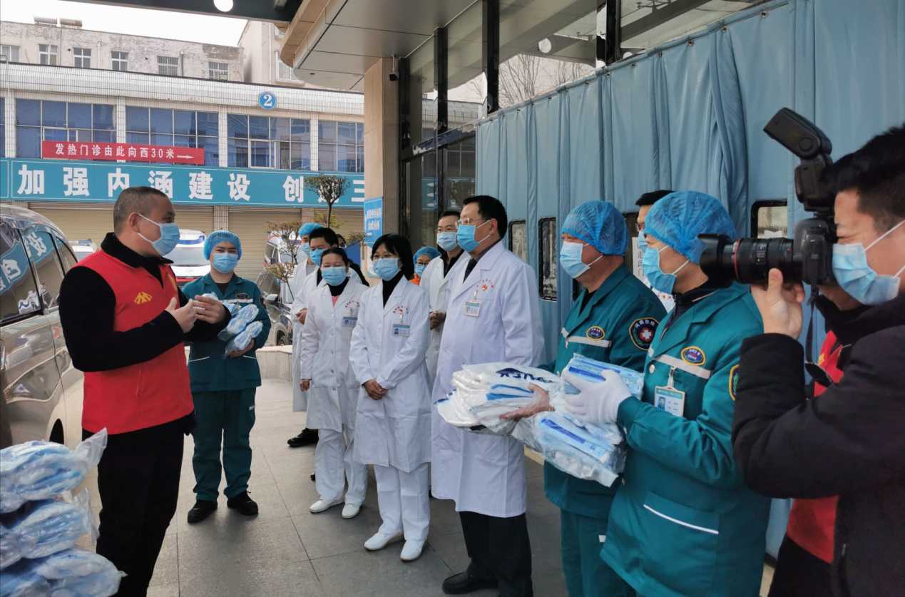 1月29日朱华磊(左1)到漯河市第五人民医院捐赠