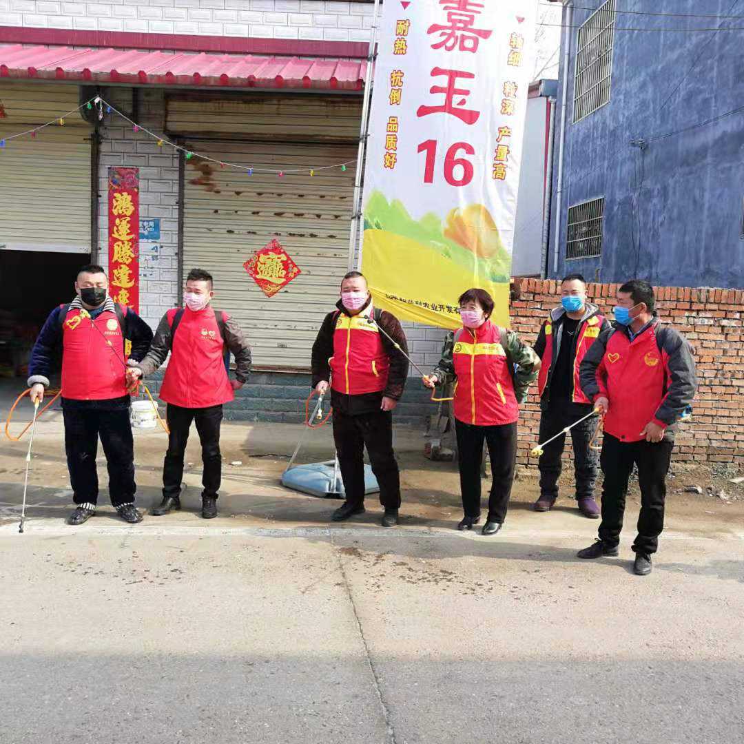 梁广辉(右1)带领志愿者对全村进行防疫消毒