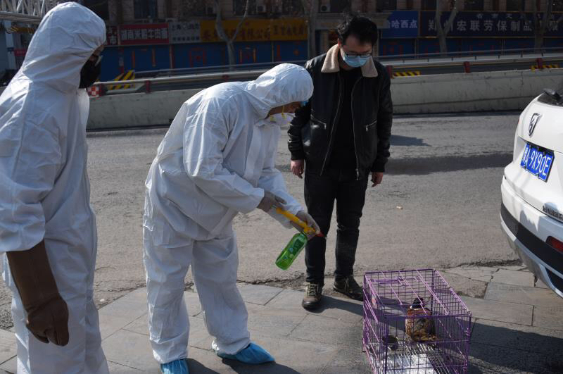 昨天下午1时30分,刘泽钦与爱人张珊端开车来到了救护站时,身着白色防护服的董朝伟站长和工作人员已等候在站门口。董站长首先向小两口保护野生动物的行为表示了感谢,随后让救护站工作人员对装着野鸡的狗笼进行了喷药消毒。