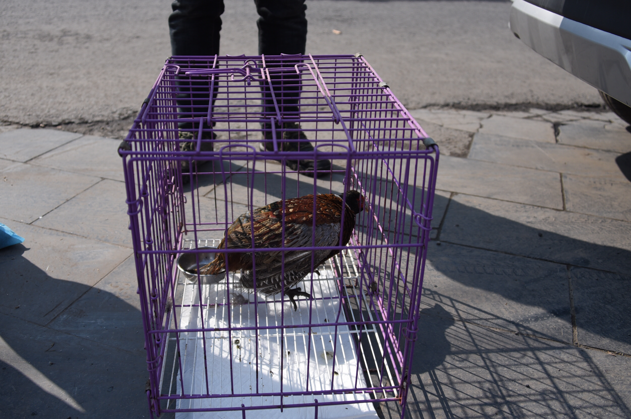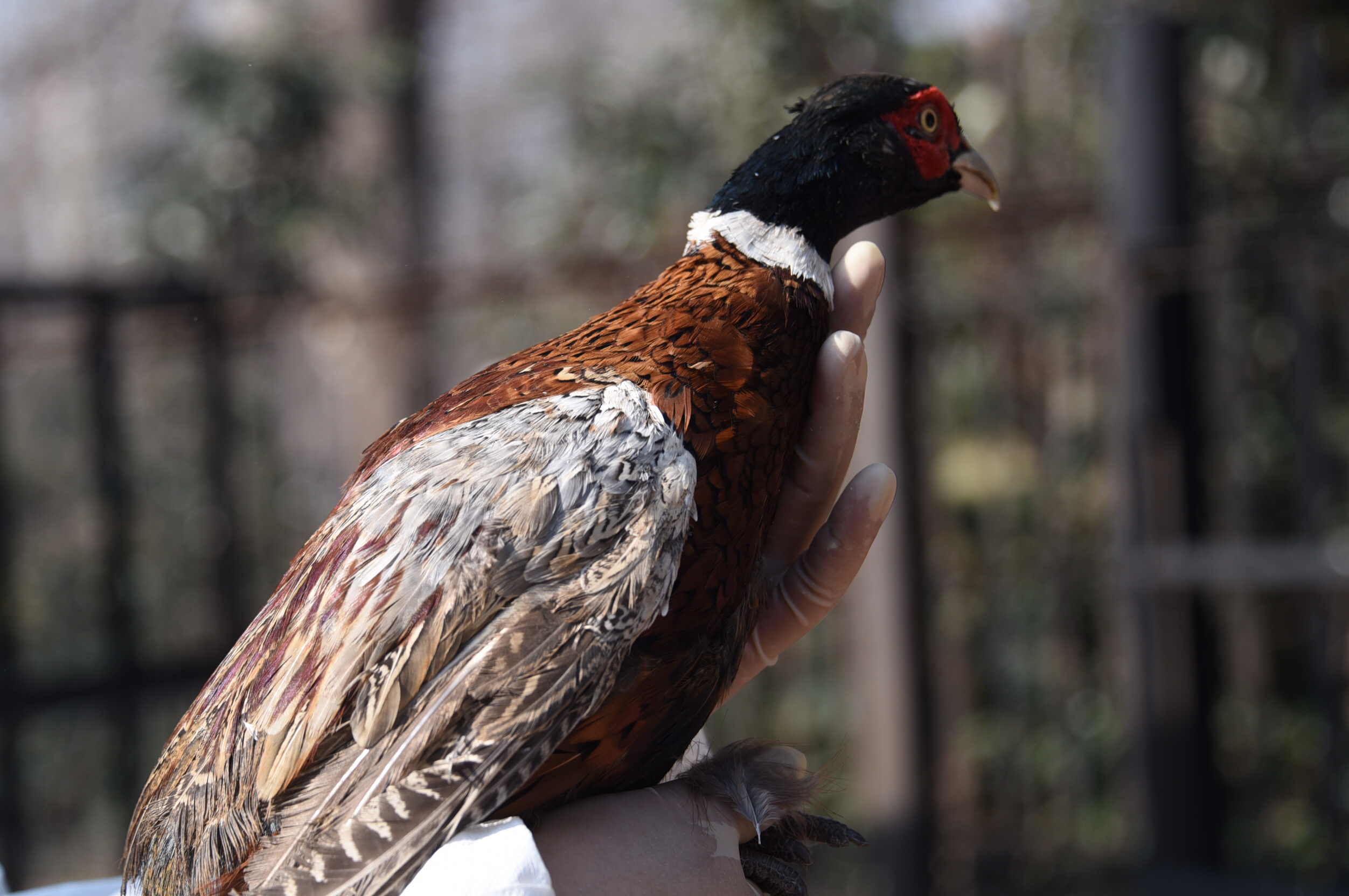 “这是一只雄性野鸡,一岁多,从其主动攻击人的情况看,这是一只野生的野鸡,并非人工繁育的,人工繁育的野鸡性情温顺,很少攻击人,这只野鸡本来应该是一身漂亮的羽毛,而现在羽毛残缺,是因为被人逮住后长时间关在笼子里饲养,导致羽毛受损,才这么难看。”董朝伟说,通过检查,该野鸡并没有受伤,只是有轻微肠炎。