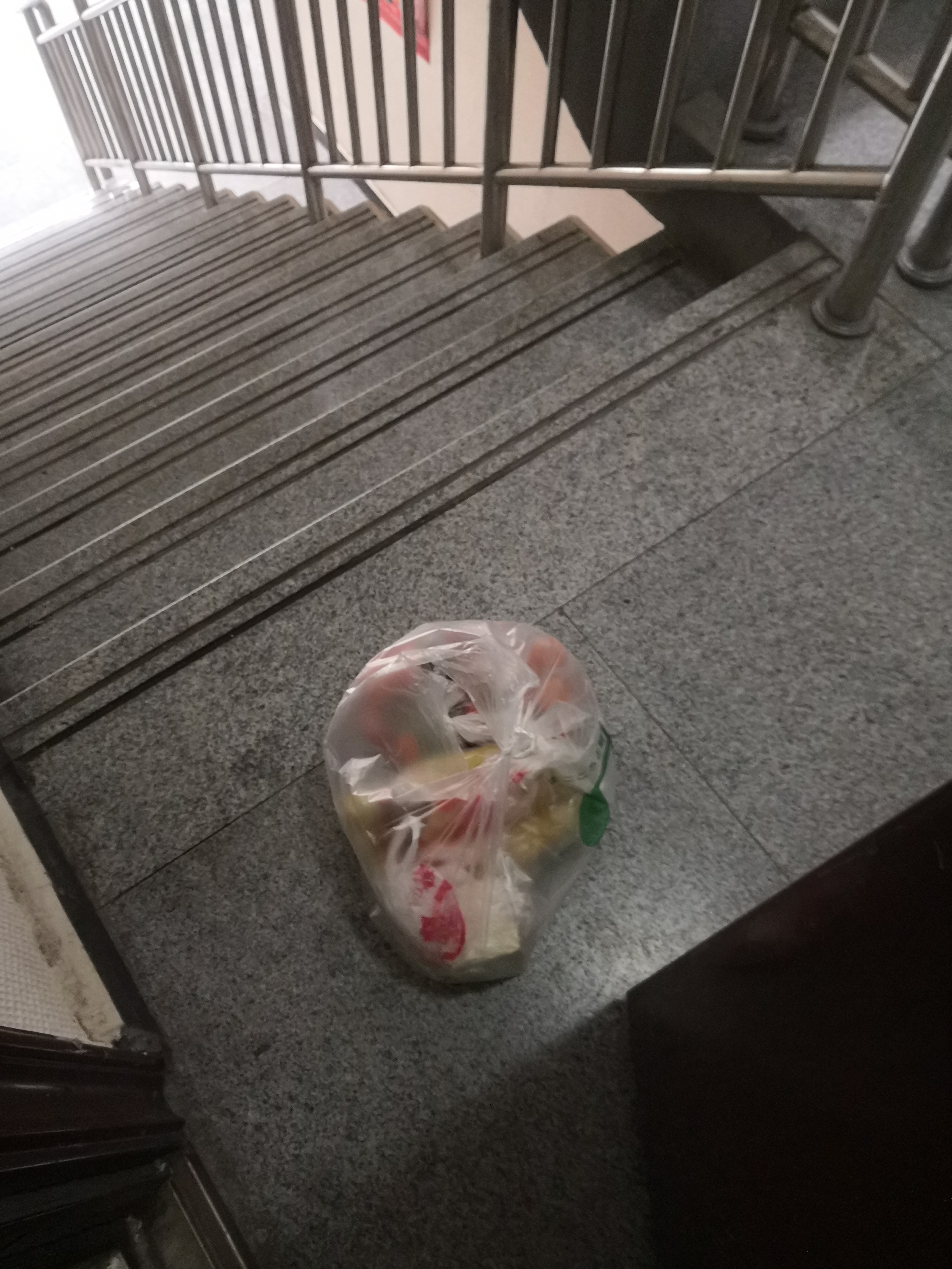 2月26日中午,家住郑州惠济区金达路某小区(应采访对象要求,不提小区名字)的业主申女士,听到门外有人大声说话,“菜放这了啊。”