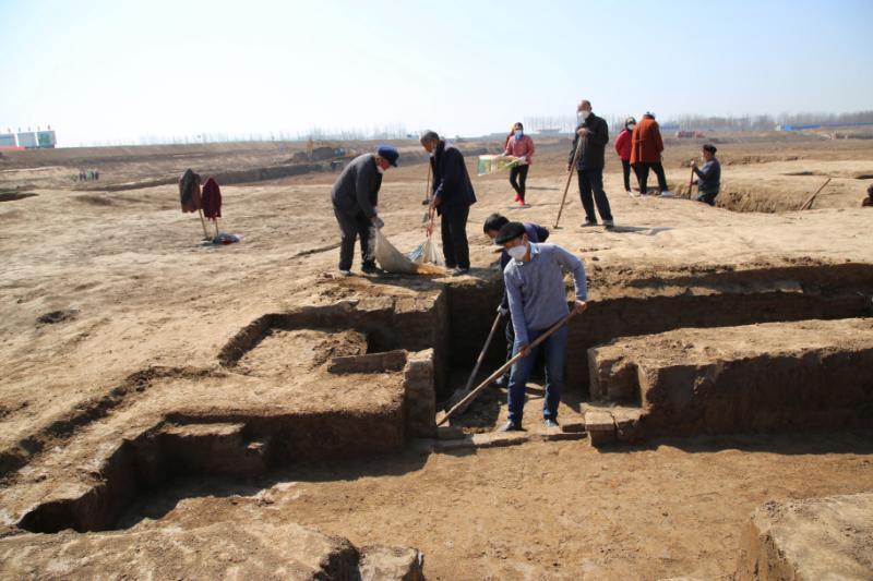 3月14日,鹿邑县引江济淮工程施工现场发现的古墓葬正在考古发掘中。考古现场,数十人在考古专家的指挥下,正在对10多个古墓葬小心翼翼进行发掘。据介绍,这些古墓朝代为汉朝,该朝代和欧洲的罗马帝国并列为当时世界上先进的文明强大帝国。