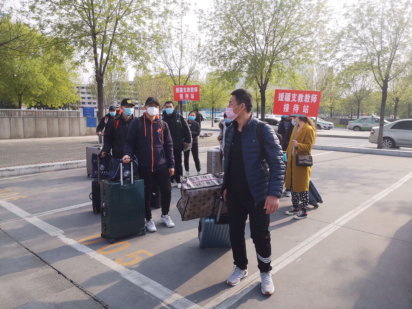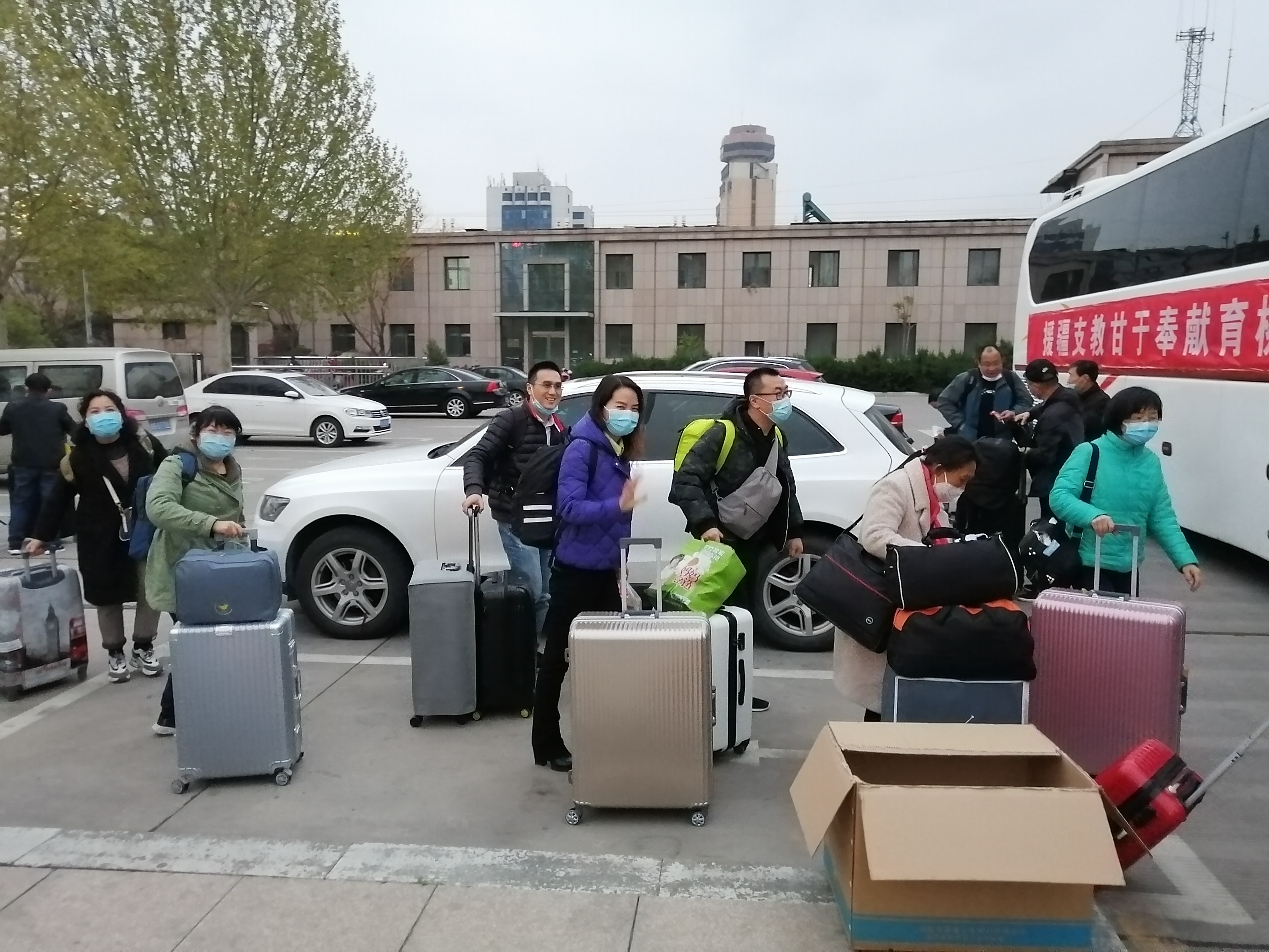 各省辖市教育局为援疆教师进行了全面体检,准备好口罩等必备防疫物品,安排专车护送援疆教师到郑州车站,举办了形式多样的欢送会。