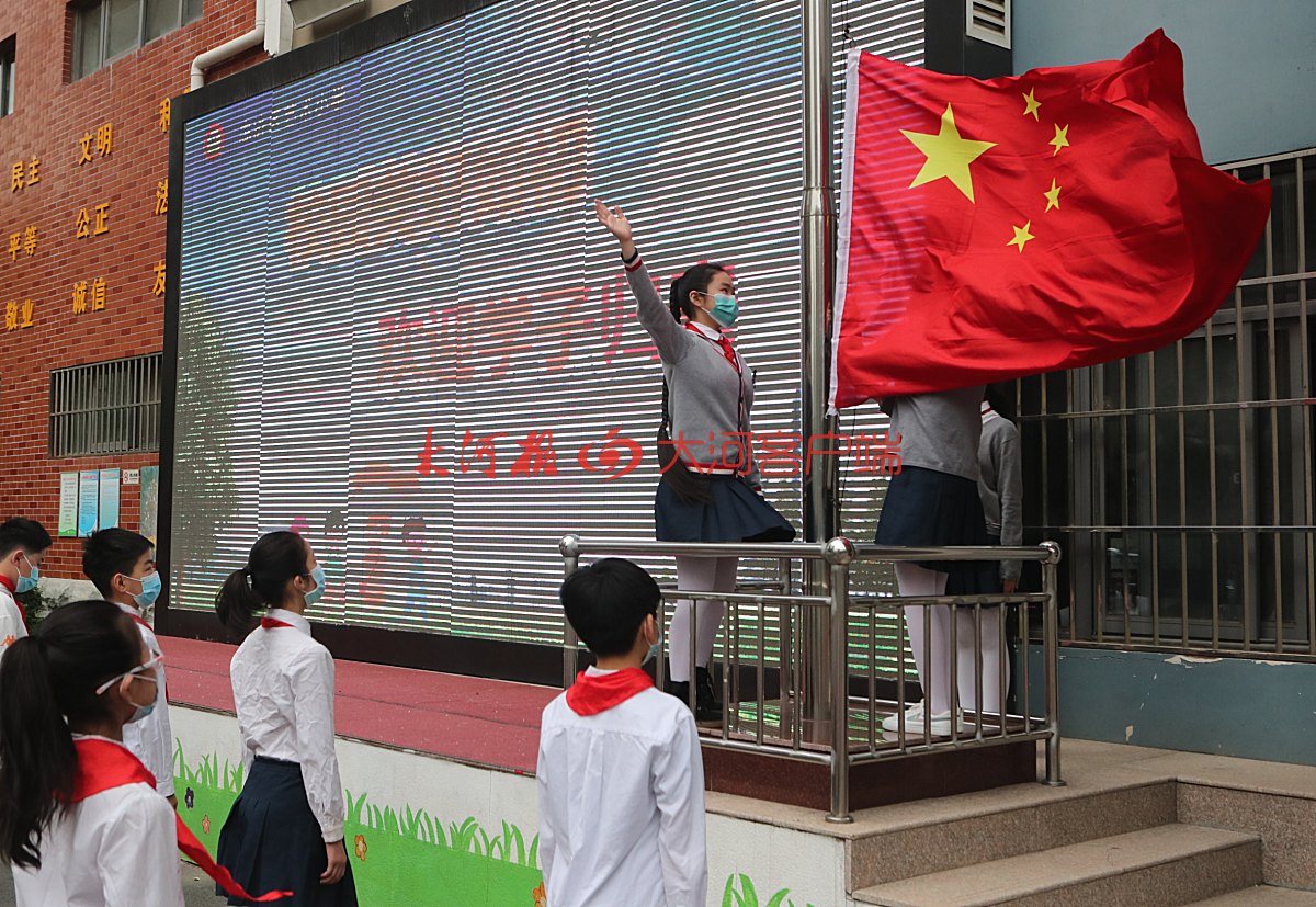 “升旗仪式现在开始!”上午8点半,郑州市惠济区艺术小学的操场上,15名少先队员迈着整齐的步伐走来,他们要将五星红旗在新学期第一次在校园里升起。