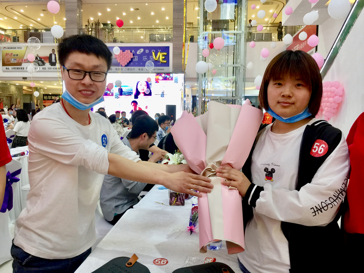 经询问得知,52号杜先生今年26岁,56号廉女士今年22岁,两人同在焦作市一家冶金公司工作。“之前见过面,但是不熟,今天见面一聊,觉得很合适,我就勇敢表白了,没想到她当场就同意了。”杜先生激动地说。