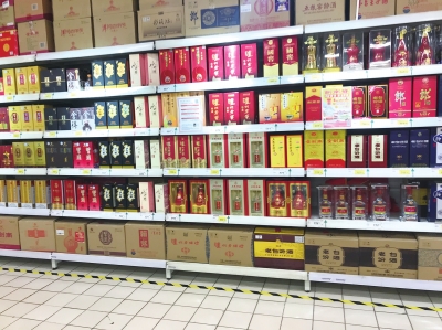 商场超市里琳琅满目的各种白酒,上面标注的年份可能只是商家炒作的噱头